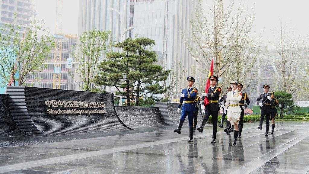 10月9日,中国中化控股有限责任公司举行入驻雄安总部大楼升旗仪式。雄安传媒中心供图