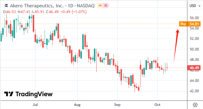 根据协议条款,诺和诺德将以每股54美元,总价47亿美元现金收购Akero,并附带每股6美元不可转让的“或有价值权” (CVR),这一部分的价值为5亿美元,收购价格较Akero周三收盘价溢价约16.2%。受该消息影响,截至发稿,Akero美股盘前涨18%,诺和诺德则跌超1%。