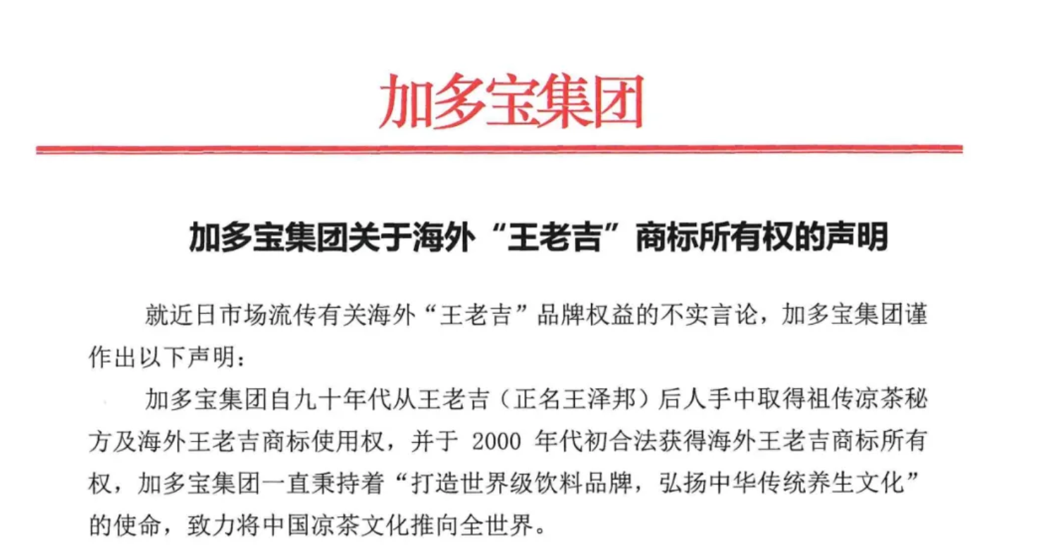 “王老吉”商标大战硝烟再起,海外争夺成焦点。10月10日,加多宝集团突然发布声明,声称拥有王老吉海外商标所有权,而此前9月30日,广州王老吉大健康产业有限公司(下称“王老吉大健康公司”)则指责加多宝属于恶意抢注,双方围绕海外商标归属展开新一轮攻防战。此次商标争夺战,不仅关乎品牌权益,更影响着双方在海外市场的战略布局。