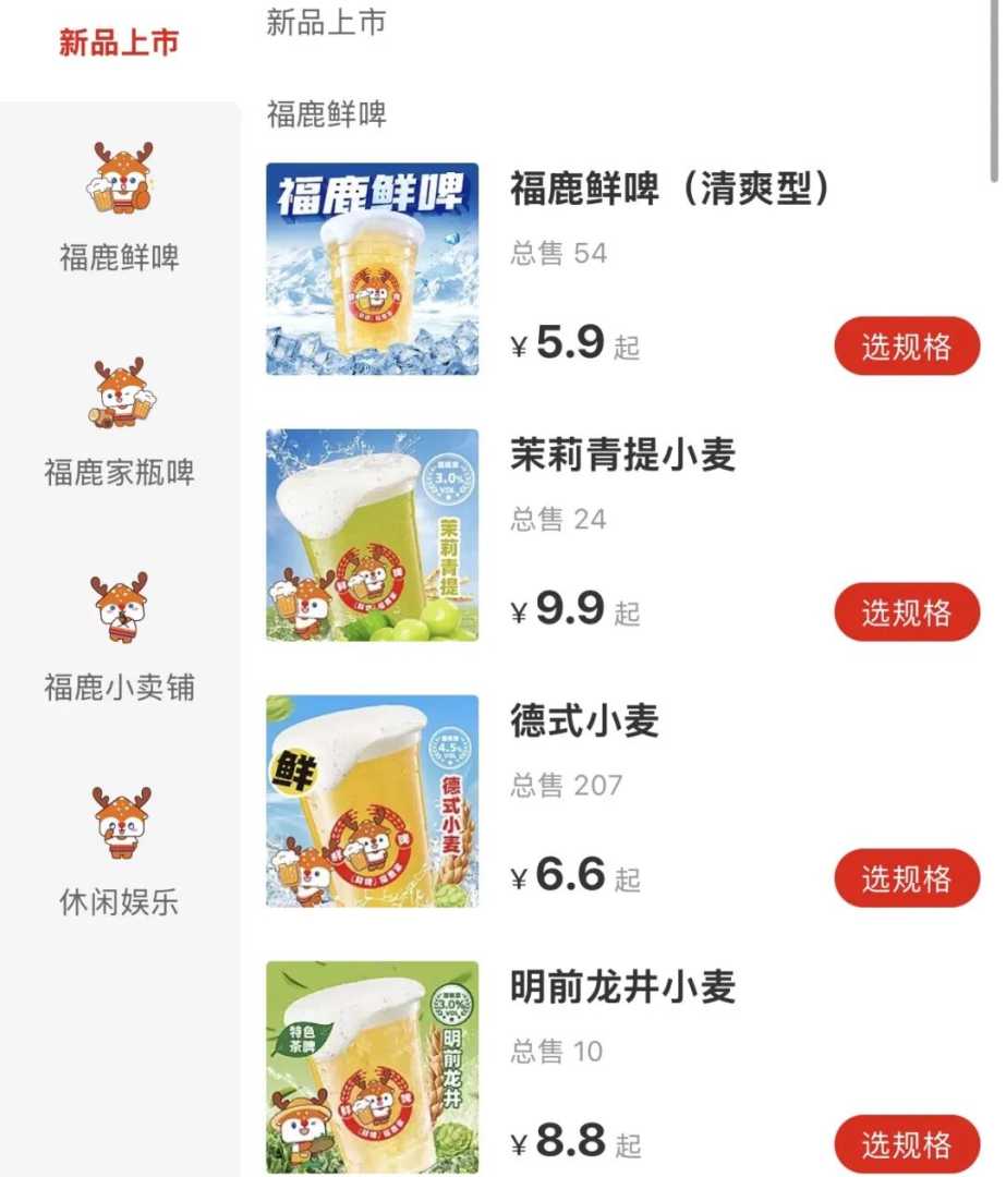 6.6元一斤的德式小麦、8.8元的明前龙井小麦......鲜啤福鹿家是平价精酿现打啤酒市场的头部品牌(SEO关键词2:平价精酿啤酒),公司创立于2021年,产品价格区间在6—10元/500ml,覆盖经典鲜啤、果啤、茶啤等。