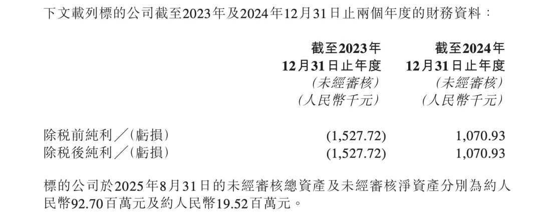 在其门店规模尚未过百的2023年,公司全年亏损152.77万元;2024年扭亏为盈,净利润达107.09万元。截至今年8月31日,公司未经审核净资产约为1952万元,未经审核总资产约为9270万元。