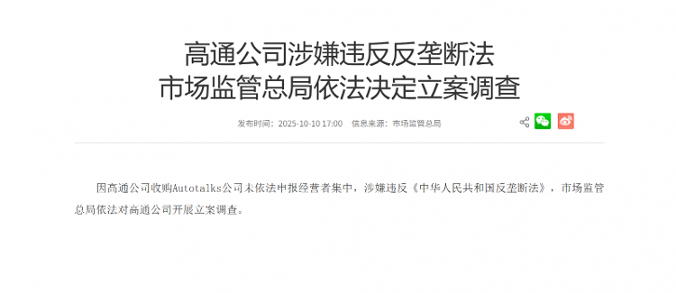 据国家市场监督管理总局消息,因高通公司收购Autotalks公司未依法申报经营者集中,涉嫌违反《中华人民共和国反垄断法》,市场监管总局依法对高通公司开展立案调查,此举彰显监管决心。