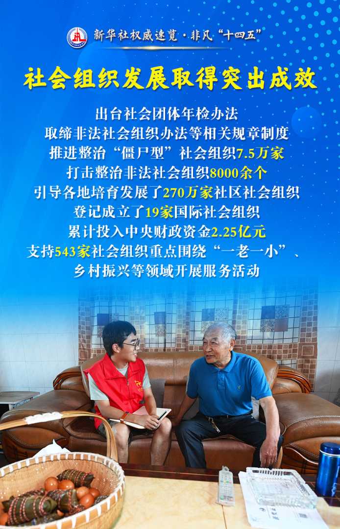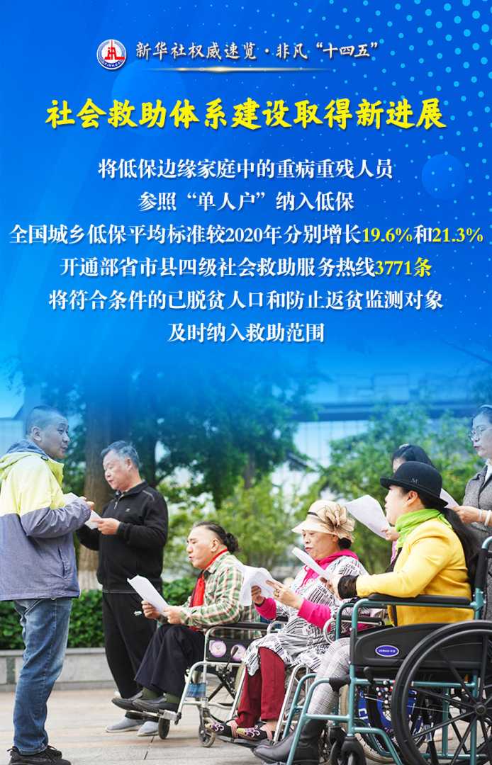 “十四五”时期,我国社会救助体系取得新进展,儿童福利保障制度获重大突破,残疾人关爱保障水平提升。民政部门发挥保民生等职能,各项民生工作取得新成就。