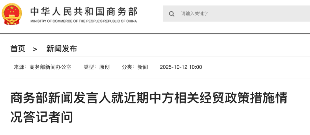 10月12日,商务部新闻发言人就近期中方相关经贸政策措施情况答记者问,其中关于稀土出口管制的举措备受关注。具体如下: