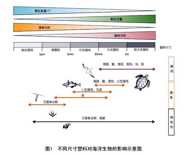 不同尺寸塑料对海洋生物的影响示意图。资料来源:生态环境部