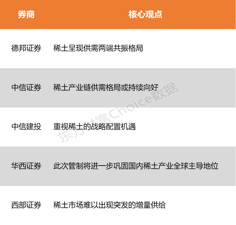 德邦证券表示,稀土作为高端制造与战略新兴产业的核心资源,正呈现供需两端共振格局。在供给集中度提升与需求结构升级的背景下,稀土产业链的战略地位有望进一步巩固,为高端制造发展注入长期驱动力。中信证券指出,稀土资源安全已上升至国家安全体系的核心维度,稀土产业链有望进入高质量发展新时代,稀土行业前景广阔。