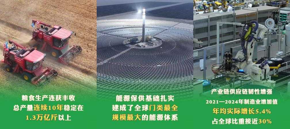 这五年,我国坚持稳中求进工作总基调,紧扣高质量发展主题,以改革创新为根本动力,创新和完善宏观调控,成功抵御了世纪疫情冲击,有效化解外部环境变化的不利影响,推动经济总量接连突破,经济实力大幅提升,国际影响力进一步增强。这五年间,我国不仅实现了经济总量的连续跨越,更在人均发展水平、国际影响力、创新驱动及安全基础等方面取得了显著成就。