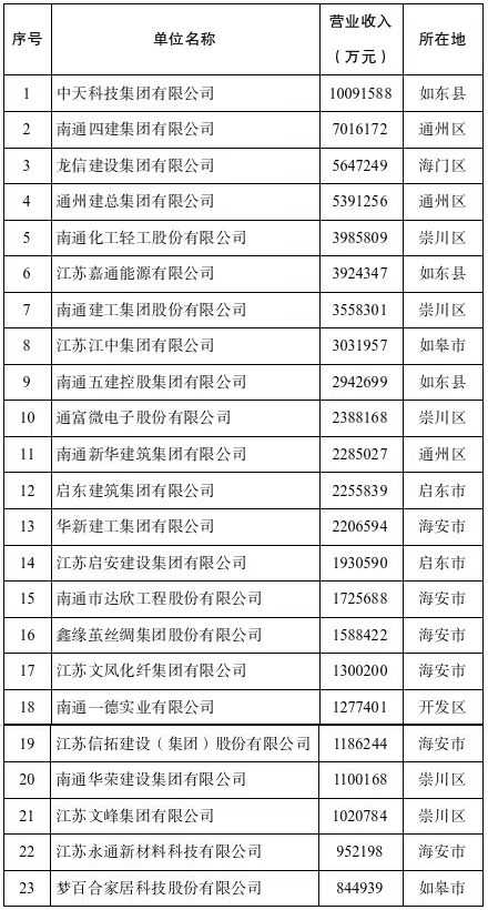 南通23家入围企业2024年度营业收入总额达到6765亿元,资产总额3129亿元,利润总额199亿元,出口总额231亿元。中天科技首次营业收入突破1000亿元,南通四建、龙信集团、通州建总3家营业收入超500亿元,彰显了企业的雄厚实力。南通企业发展成果显著。