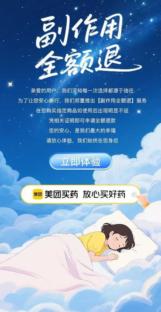 美团买药相关负责人表示,由于个体性差异,服用司美格鲁肽、替尔泊肽等GLP-1药物和莱博雷生、达利雷生等抗失眠药物后可能出现副作用,引起用户的担心。为响应用户需求,美团买药于近日上线了副作用全额退功能,进一步升级用药保障体系,让用药体验更加安心无忧。与此同时,美团还推出免费三甲医院医生线上问诊服务,帮助用户科学应对用药后的健康问题,全方位守护用户健康(线上问诊)。