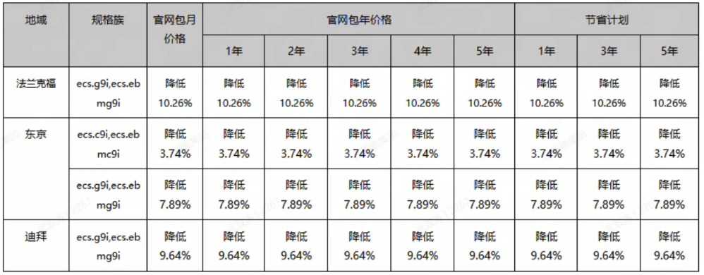 每经AI快讯,10月14日,阿里云发布重要公告,将于北京时间2025年10月30日12时起,对部分云服务器ECS产品价格进行全面调整。本次云服务器价格调整涉及的地域广泛,包括法兰克福、东京、迪拜等国际重要节点,调整的规格族涵盖ecs.c9i、ecs.g9i、ecs.r9i、ecs.ebmc9i、ecs.ebmg9i、ecs.ebmr9i等多个系列,价格降幅涉及包月价、包年价及节省计划价格,为云服务用户带来显著成本优化。此次价格调整政策明确,仅适用于上述包月价、包年价格及节省计划在生效日后所发起的符合条件订单,包括新购、续费、升降配等操作,确保用户能够清晰了解并享受价格优惠。