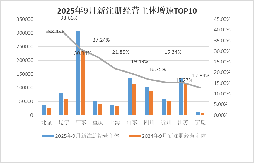 9月广东省新注册经营主体数量遥遥领先,经济活力凸显