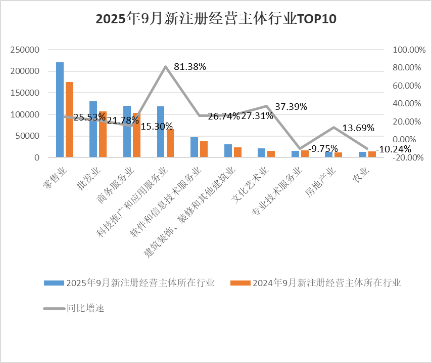 9月份科技推广和应用服务业新注册经营主体增速最快,行业分化明显