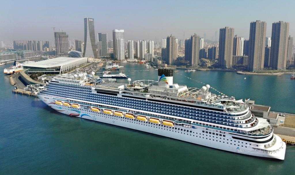 “爱达·魔都号”邮轮靠泊在青岛邮轮母港码头(4月6日摄,无人机照片)。新华社记者李紫恒摄 今日之中国,交通正以前所未有的效率带动经济社会发展的“血液循环”。