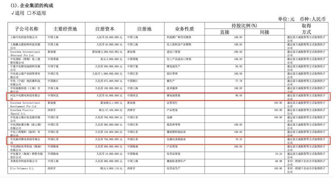 界面新闻查询历年财报发现,该公司旗下锂电相关企业共4家。根据2025年半年报,除去已破产的骏盛新能源和宁夏锂电外,仅剩河北中化锂电科技有限公司与中化扬州锂电科技有限公司。