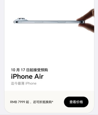 值得一提的是,苹果公司于10月13日同步推出的iPhone Air成为市场焦点。这款起售价7999元的5G机型,以5.6毫米厚度刷新苹果产品纪录,其核心突破在于全面采用eSIM技术。中国大陆用户于10月17日(星期五)上午9点起可预购iPhone Air机型,10月22日(星期三)起正式发售。