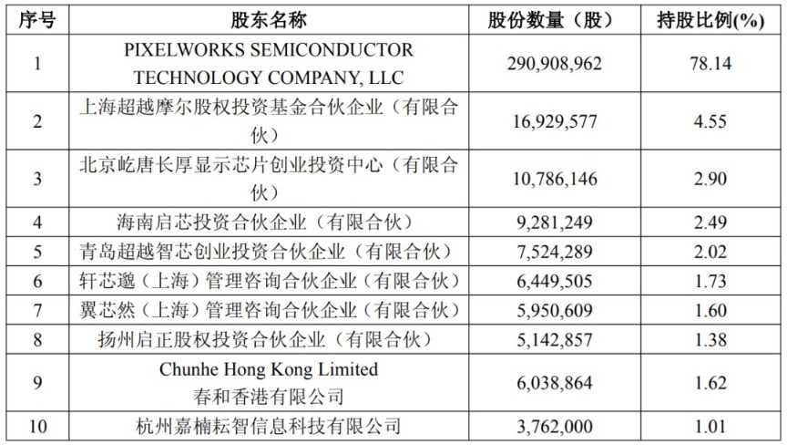 据公告,目前逐点半导体共有14名股东,芯原股份持有逐点半导体股份1.01%,Pixelworks 持股78.14%。