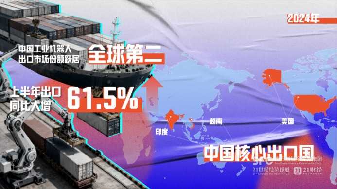 一个是智能制造的根基,一个是千行百业的“智慧大脑”,一个则直接关乎国民的生命健康。这三大行业都在发生技术的快速迭代与落地应用,并加速向全球市场扩张。我们一个个来看,首先是机器人,根据海关总署公布的信息,2024年,中国工业机器人出口市场份额跃居全球第二,今年前三季度出口增长54.9%,越南、印度、美国成为中国机器人核心出口国。