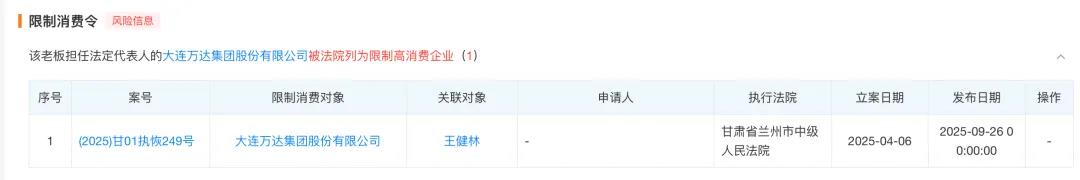 不久前,王健林被“限高”又取消曾引发关注。据天眼查,大连万达集团股份有限公司(以下简称万达集团)及其法定代表人王健林等被限制高消费,时间为2025年9月26日。