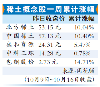 受政策调控及国际动态多重因素驱动,本周稀土板块表现亮眼,成为市场关注焦点。截至10月16日收盘,北方稀土、中科三环、盛和资源股价虽有所回落,但得益于此前涨幅,前三季净利润增幅均达100%以上,稀土市场活力尽显。