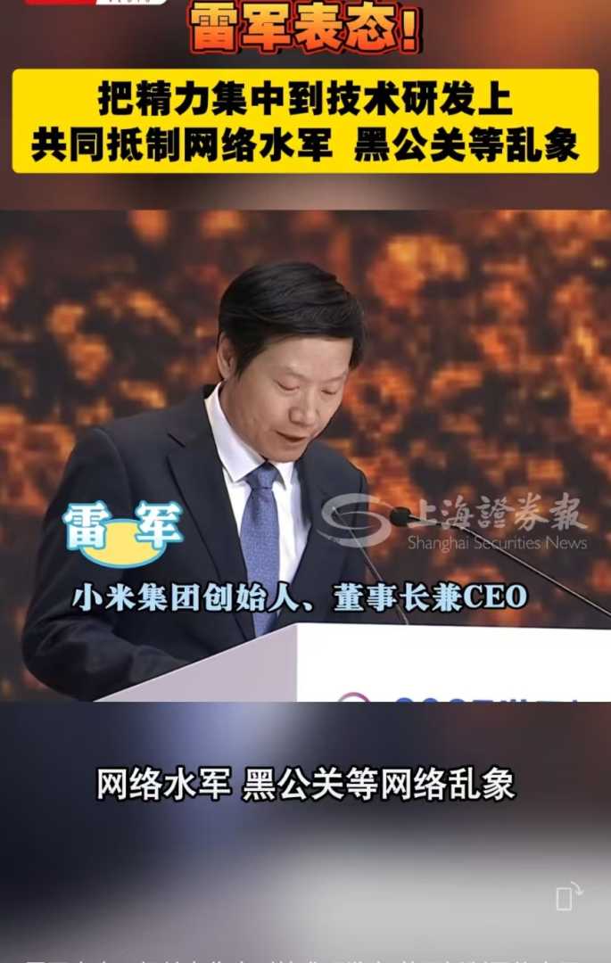 雷军:智能网联汽车行业要共同抵制网络水军、黑公关等网络乱象
