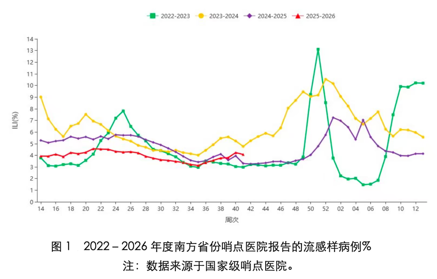 近日气温有所下降,我国流感发病情况如何?胡必杰表示,根据国家流感中心通报的数据,今年第41周(10月6日至12日),南方省份哨点医院报告的流感样病例占门急诊病例比例(ILI%)为4.1%,低于前一周水平(4.2%)。北方省份哨点医院报告的ILI%为2.8%,低于前一周水平(3.2%)。可以说,我国流感发病目前总体平稳,处于低位。公众需关注本地疾控部门发布的流感预警信息。