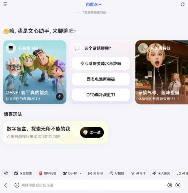 但过多的AI内容和AI相关的“玩法”,是否会异化百度作为搜索引擎的角色呢?对此,百度AI搜索产品负责人杨宁告诉记者,这次转变的主题是从“百度一下,你就知道”变成了“解锁你的万能搭子”。