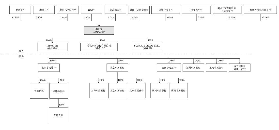 此外,招股书显示,港股上市前,小马智行联合创始人兼CEO彭军持股15.57%,联合创始人兼CTO楼天城持股5.5%;丰田持股11.02%,红杉中国持股5.87%,五源资本持股4.04%,股权结构清晰。