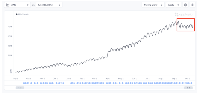 Apptopia表示,虽然10月才刚刚过半,按照下载量的环比百分比变化趋势,本月的环比降幅预计将达到8.1%。