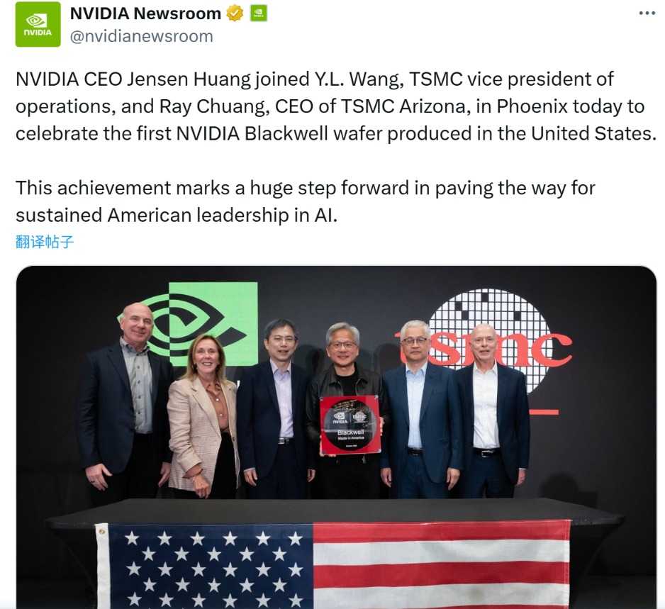 黄仁勋庆贺Blackwell晶圆下线,英伟达AI芯片量产新阶段