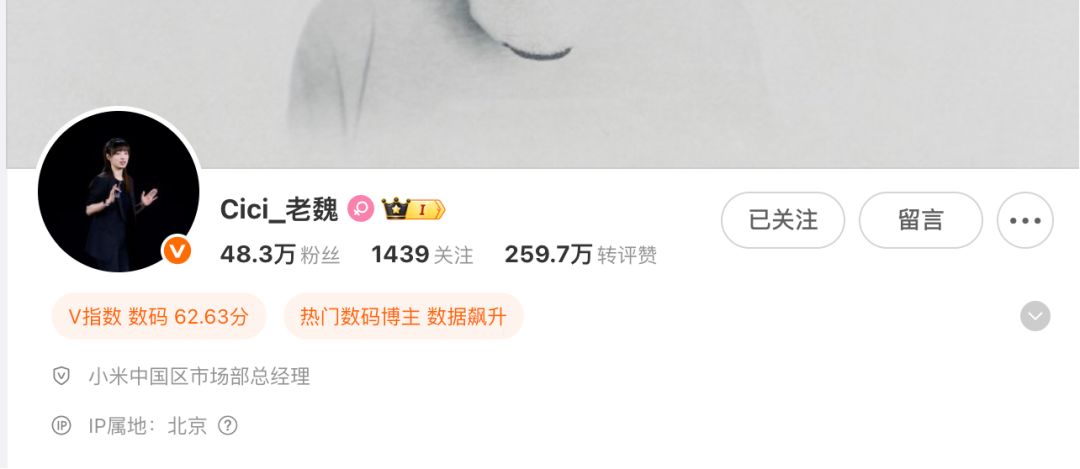 记者查询发现,目前魏思琪社交平台认证资料已更新为“小米中国区市场部总经理”。此前,其认证信息显示为“小米手机市场部总经理,小米汽车市场部副总经理”。据红星新闻,公开资料显示,魏思琪毕业于中央美术学院,是资深产品经理(关键词2:魏思琪履历)。她于2013年加入小米集团工作,负责过小米官网产品页设计及发布会PPT;2018年加入小米CC团队,负责产品设计;2021年12月起接任小米数字系列产品线负责人。2024年10月8日,卢伟冰曾在微博中提到时任小米手机产品经理的魏思琪,她已经在去年开始参与小米SU7发布等汽车市场业务,并在之后兼任两个重要管理岗位:小米手机市场部总经理和小米汽车市场部副总经理。
