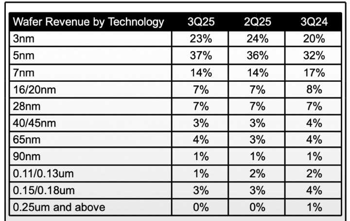 第三季度,台积电3nm工艺收入占比23%,5nm工艺收入占比37%,两者叠加已经连续两个季度合计为公司贡献60%的收入比重,而在去年,这一比例还是52%。