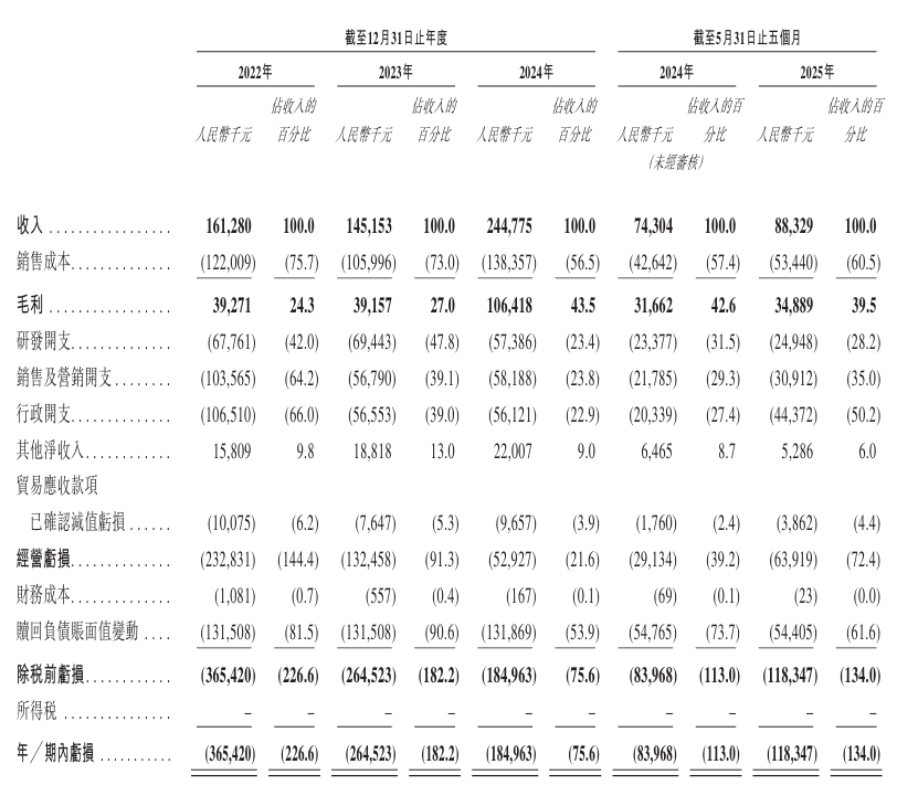 具体而言,重大销售成本是资本密集型机器人制造业的固有特征,公司销售成本的主要组成部分为已售存货成本,指材料及耗材成本以及支付给OEM供应商的服务费;在机器人服务智能体行业不断发展的背景下,公司在销售和管理方面进行了大量投资,以建立品牌知名度和合作关系;研发方面,此前三年报告期内,公司研发投入分别占总收入的42.0%、47.8%和23.4%,从而在不断变化的行业中提升技术领先地位及维持竞争力。