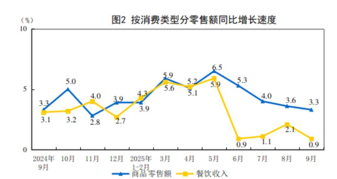 国家统计局发布社会消费品零售数据,9月零售总额增长3%