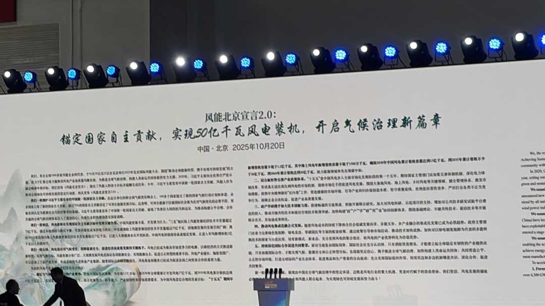 10月20日,界面新闻记者现场获悉,北京国际风能大会暨展览会上发布了《风能北京宣言2.0》(下称《宣言2.0》)。