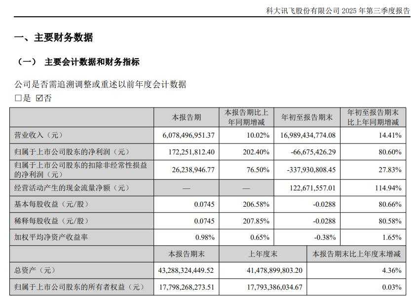 科大讯飞2025年Q3财报:净利润同比激增202%,人工智能领域领先