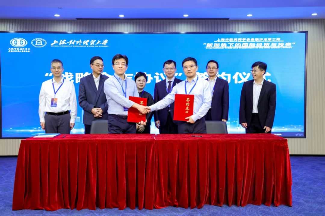 活动现场,上海市欧美同学会金融分会与上海对外经贸大学金融管理学院签署战略合作协议,双方将围绕学术交流、学生实践、就业指导等领域深化合作,实现双向赋能。