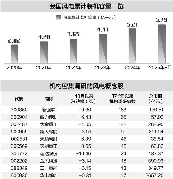 10月20日2025北京国际风能大会开幕,《风能北京宣言2.0》发布,提出“十五五”期间年新增装机容量不低于1.2亿千瓦等目标。我国海上风电快速发展,政策支持力度大,13只风电概念股获机构调研。