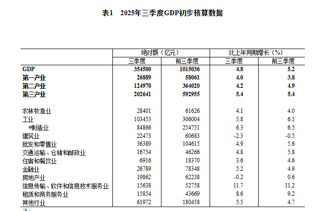 2025年三季度国内生产总值公布,信息服务业增11.7%