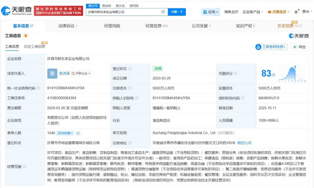 10月20日,胖东来商贸集团宣布设立开放日,每月10日、20日面向企业级学习参访开放。同时,许昌市胖东来实业有限公司发生工商变更,新增旅游等业务,注册资本5000万人民币,显示强大资本实力。