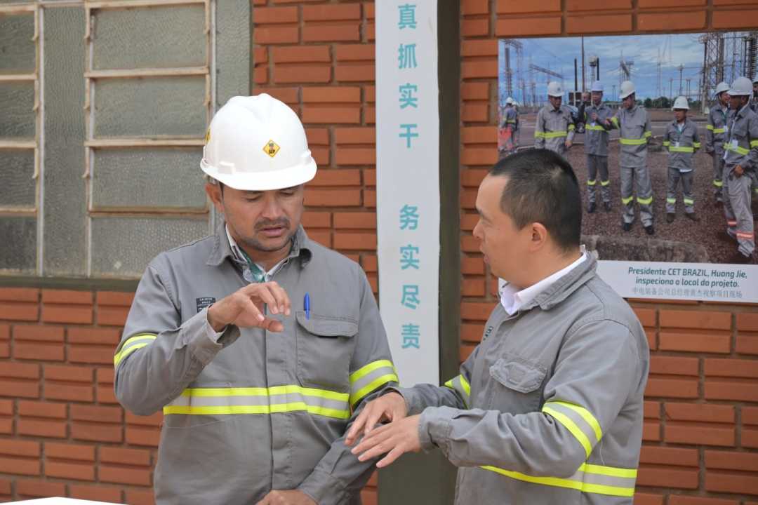 10月4日,在巴西伊瓜苏,中巴工作人员在伊泰普直流改造项目现场交流。新华社记者陈昊佺摄