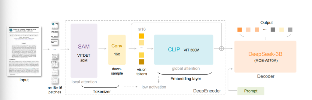 知名科技媒体《麻省理工科技评论》解释称,DeepEncoder是整个系统的关键所在。它的设计目标在于,在处理高分辨率输入图像的同时,保持较低的激活内存,并实现极高的压缩比。为达到这一目的,DeepEncoder融合两种成熟的视觉模型架构:SAM(Segment Anything Model)和 CLIP(Contrastive Language–Image Pre-training)。前者以窗口注意力机制(window attention)见长,擅长处理局部细节,构成编码器的前半部分;后者则依赖密集的全局注意力机制(global attention),能够捕获整体知识信息。