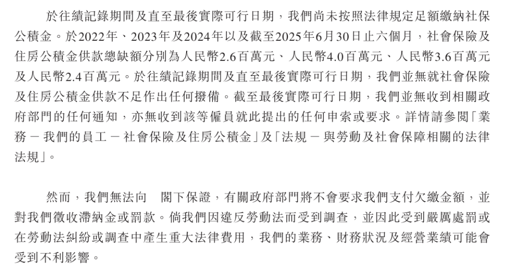 禹王生物营养强调,截至最后实际可行日期,公司并无收到相关政府部门的任何通知,也无收到雇员就此提出的任何申索或要求。但公司无法保证,有关政府部门将不会要求支付欠缴金额,并对公司征收滞纳金或罚款。倘若公司因违反劳动法而受到调查,并因此受到严厉处罚或在劳动法纠纷或调查中产生重大法律费用,公司的业务、财务状况及经营业绩可能会受到不利影响。
