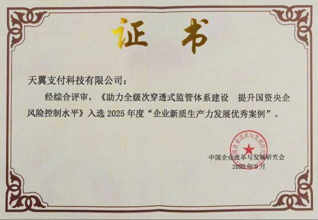 近日,中国电信翼支付凭借《助力全级次穿透式监管体系建设,提升国资央企风险控制水平》案例,入选中国企业改革与发展研究会评选的2025年度“企业新质生产力发展优秀案例”,这一荣誉彰显了其在企业监管数智化领域的卓越成就。