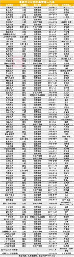百家百亿私募中,量化私募数量最多,为46家;主观紧随其后,共44家;混合策略私募有8家;另有2家机构尚未披露投资模式。百亿私募突破百家,主观成扩容主力军。10月以来,百亿级私募机构数量继续增加。一方面,A股市场企稳回升,权益类资产收益有所提升,带动私募产品业绩与规模同步上升。另一方面,投资者对头部私募的认可度进一步提高,资金持续向业绩较稳、策略成熟的机构集中。此外,行业“头部效应”进一步强化,资源不断向优质私募倾斜,加速了行业优胜劣汰,也推动了百亿私募阵营的扩容。
