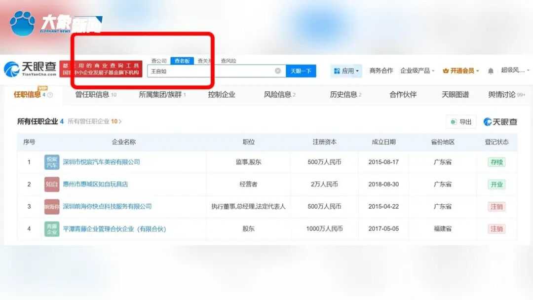 天眼查任职信息显示,王自如名下关联4家企业,其中2家为存续状态,包括深圳市悦宸汽车美容有限公司等。值得注意的是,目前,王自如仍处于被限制高消费状态,申请人为上海曙晖创业投资中心(有限合伙)。案件流程信息显示,王自如已因此案被冻结150万股权,目前该案已成为终本案件,未履行金额为2878万余元,这一财务困境让人唏嘘不已。