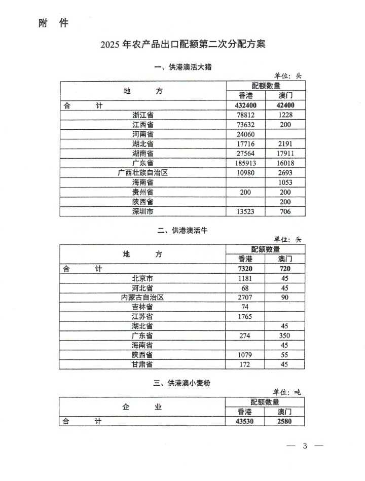 10月23日,商务部发布2025年农产品出口配额第二次分配通知,要求各地做好配额分配、核查和反馈,重点分配给优质企业,并规范边贸大米和供港澳小麦粉的出口。