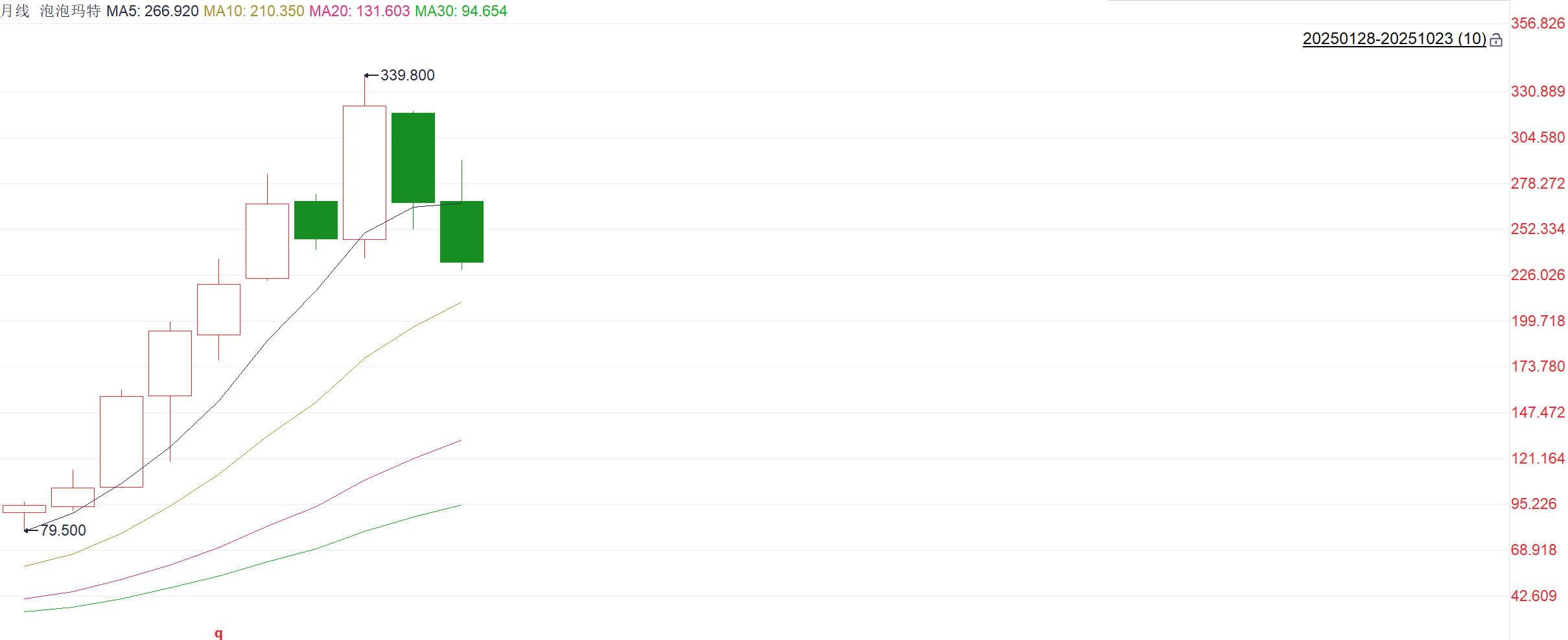 值得注意的是,泡泡玛特自9月以来股价持续回调,其累计跌幅接近30%,这一趋势让投资者倍感压力。