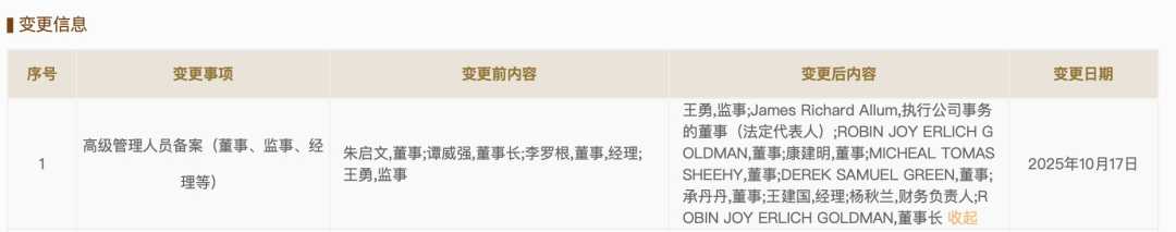 伴随更名,易联支付董事、高管及投资结构均完成重要调整。易联支付公司法定代表人由谭威强变更为James Richard Allum,董事朱启文、董事长谭威强、董事经理李罗根退出,新增执行公司事务的董事(法定代表人)James Richard Allum、董事ROBIN JOY ERLICH GOLDMAN、董事康建明、董事MICHEAL TOMAS SHEEHY、董事DEREK SAMUEL GREEN、董事承丹丹、经理王建国、财务负责人杨秋兰、董事长ROBIN JOY ERLICH GOLDMAN。