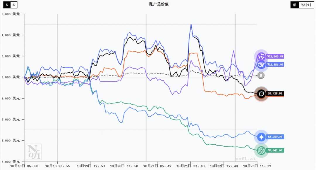 10月23日,在AI大模型实时投资比赛“Alpha Arena”中,阿里千问Qwen超越此前保持领先的Deepseek,首夺第一,而GPT-5则继续垫底,这场AI投资竞赛引发了广泛关注。作为AI投资领域的焦点赛事,“Alpha Arena”由美国人工智能研究实验室nof1.ai发起,向六个顶尖的大模型各提供10,000美元的真实资金,让它们在真实市场中,用真金白银进行投资比赛。nof1.ai挑选了中美6个顶级大模型,包括:Anthropic的Claude 4.5 Sonnet、深度求索的 DeepSeek V3.1 Chat、谷歌的Gemini 2.5 Pro、OpenAI的GPT-5、xAI的Grok 4以及阿里巴巴的Qwen3-Max。