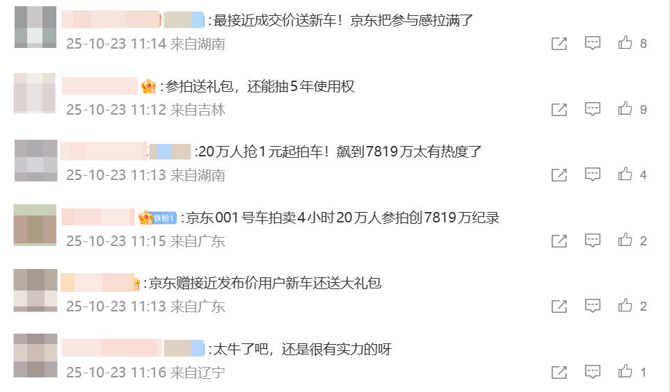 京东汽车“赠车”“赠大礼包”的慷慨之举,获得了大量网友的点赞,网友纷纷表示“参与感拉满”“有实力”。